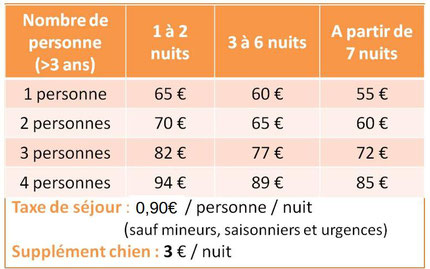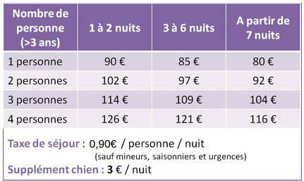 Prix par nuit (petit déjeuner inclus) :
